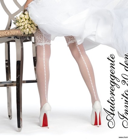 Свадебные чулки из микросетки с широкой кружевной резинкой и вывязанным швом по задней детали. Безупречное качество. Силиконовая резинка – для особого комфорта.