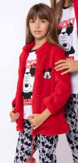 Пушистая теплая домашняя куртка с воротником-стойкой, на молнии, двумя передними нашивными карманами. Собачка с двумя помпонами. Вышитая мордочка Микки Мауса на груди
