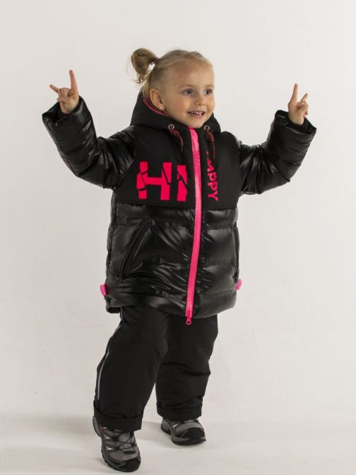 Комплект для детей Хэппи – стильный пуховой комплект для детей с 2.5 лет до 7. Пуховая куртка выполнена из новейшей ткани с плёночным покрытием, не позволяющей пуху мигрировать. Сочетание матовой кокетки ,капюшона из таслана с блестящей пуховой тканью смотрится эффектно. Цветовыми акцентами служат флуоресцентная печать на кокетках полочки, шнурки , тесьма на спинке. Куртка на 300 грамм утеплителя и флисовая мягкая, лёгкая подкладка, трикотажные манжеты на рукавах . Интересный вариант внешней утяжки по низу изделия . В курточке предусмотрен термометр, для контроля температуры В полукомбинезоне предусмотрены удобные регулируемые бретели из эластичной резинки, эластичная резинка на манжетах обеспечивает лучшее сохранение тепла внутри комбинезона. Есть светоотражающие элементы