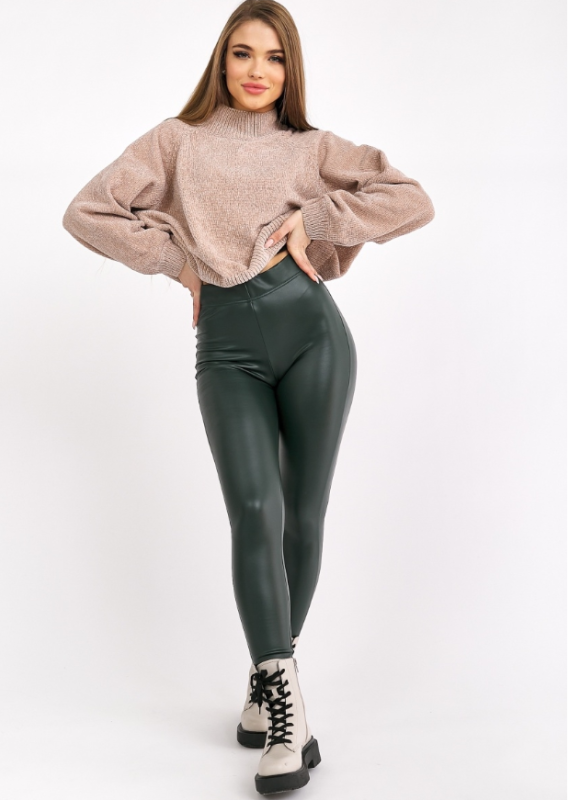 Леггисы на тонком флисе с высокой посадкой и широким поясом, без карманов.