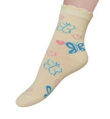 Однотонные носки с рисунком "Бабочки" Сердечки по всему носку, борт ПИКОТ