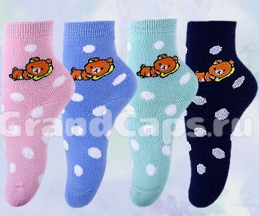 По всему носку вывязаны горошки, сбоку на щиколотке под бортом вывязан мишка. Plush по всему носку