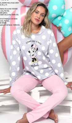Джемпер с округлым вырезом горловины и небольшими разрезами по бокам. Декорирован апликацией с глиттером, надписью Some like it dot, крупным прокрашенным белым горохом. Брюки прямого кроя. Пояс на резинке с регулируемой кулиской