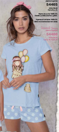 Футболка с округлым вырезом горловины. Вставка из кружевной сетки на плечах. Декорирован фирменной девочкой Santoro с глиттером. небольшие разрезы по бокам. Хлопковые шорты с аплицированным крупным белым горохом. Пояс на резинке с регулируемой кулиской