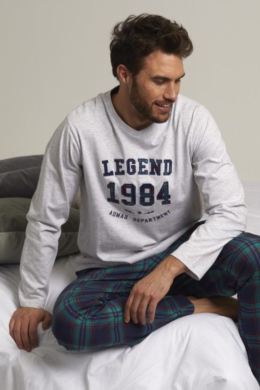 Клетчатые хлопковые брюки прямого кроя с боковыми карманами в шве и поясом на резинке с регулируемой кулиской. Меланжевый джемпер с V-образным вырезом горловины. Декорирован вышитой нашивкой.