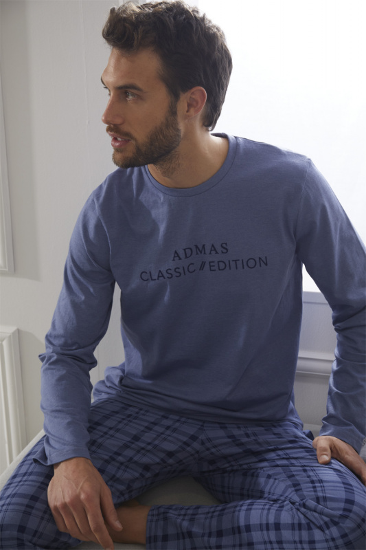 Клетчатые брюки прямого кроя. Пояс на резинке с регулируемой кулиской. Боковые карманы в шве. Джемпер с округлым вырезом горловины. Декорирован флоковой аппликацией Admas Classic Adition