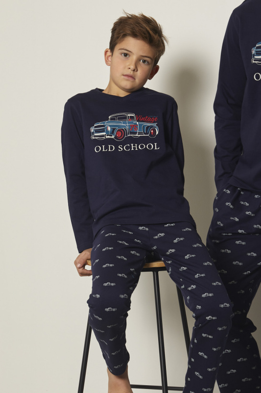 Джемпер с V-образным вырезом горловины и бейкой в тон. Декорирован апликацией. Брюки из принтованного хлопка (принт машинки) прямого кроя. Пояс на резинке.