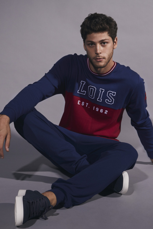 Брюки с манжетами, с карманами, пояс на резинке с регулируемой кулиской. Джемпер комбинированный из 2-х материалов с округлым вырезом горлови и контрастной полосатой бейкой-резинкой. Декорирован вышивкой и нашивкой-логотипом в нижнем левом крае. Рукава с манжетами. Вышитый фирменный бык на левом рукаве.