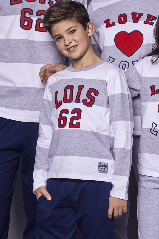 Хлопковые брюки-джоггеры с боковыми карманами в швах, поясом на резинке. Полосатый джемпер с округлым вырезом горловины. Декорирован вышитой нашивкой из велюра, небольшой нашивкой логотипом в нижней левой передней части. Рукава с манжетами и имитацией заплаток на логтях из велюра (красные).