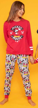 Джемпер из футурированного хлопка с округлым вырезом горловины и бейкой в тон. Декорирован апликацией с эффектом состаривания. Рукава с манжетами и аплицированными полосками. Низ на вшивной резинке-планке. Брюки на манжетах из принтованного хлопка (принт микки маусы). Пояс на резинке с регулируемой кулиской.