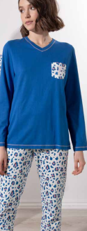 Джемпер с V-образным вырезом горловины и бейкой в тон. Наклданой нагрудный карман в тон брюк декорирован вышитым логотипом admas. Небольшие боковые разрезы. Брюки с анималистичным принтом прямого кроя. Пояс на вшивной цветной резинке.