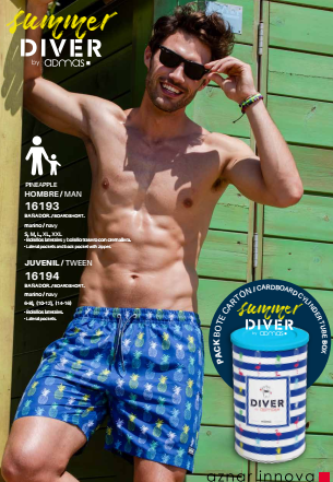 Стильные пляжные шорты из принтованного полотна, с боковыми каманами в швах, с задним карманом на замке, пояс на резинке с регулируемой кулиской, небольшие разрезы на брючинах. С внутренними сетчатыми плавками. Резиновый логотиа Diver на левой брючине и заднем кармане