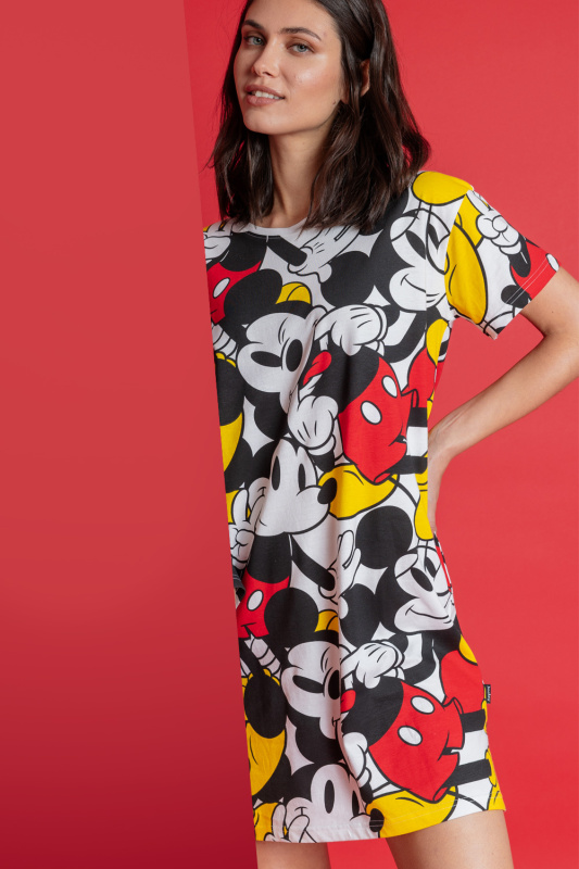 Сорочка из принтованного хлопка. Округлый вырез горловины. Небольшие боковые разрезы