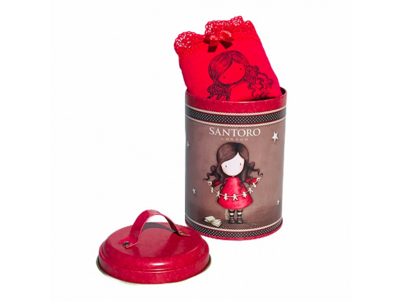 Трусы-слипы с кружевом и фестоном по пройме ножек. Декорированы апликацией и атласным бантиком. Упакованы с жестяную баночку с крышкой